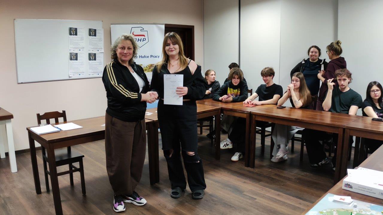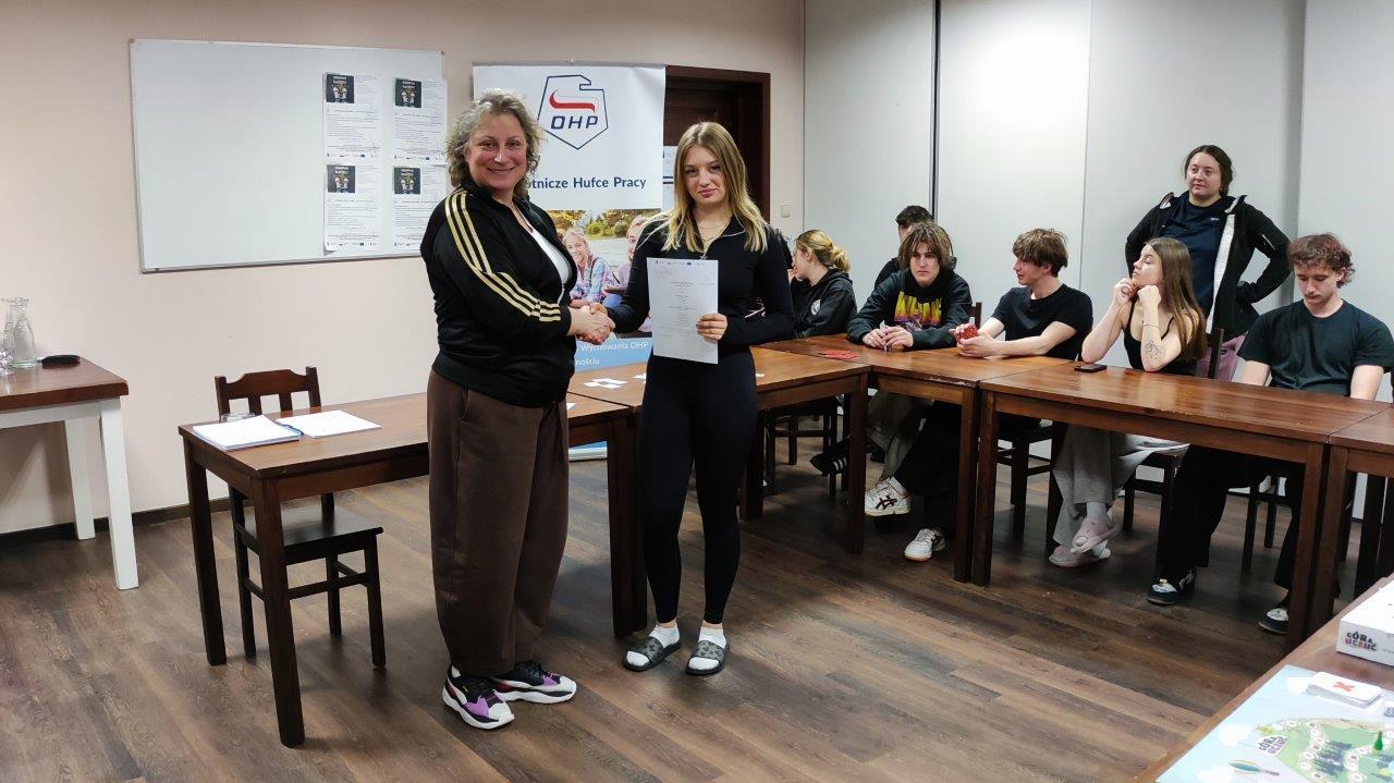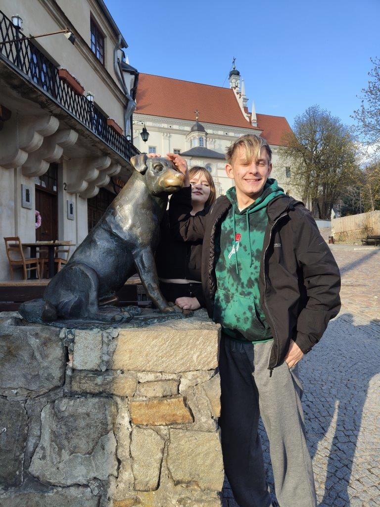 W dniach 8–11 kwietnia 2026 r. nasi uczniowie wzięli udział w wyjeździe warsztatowym zorganizowanym przez Hufiec Pracy w Chełmie w ramach projektu „Kompas Kariery”. Przedsięwzięcie miało na celu wsparcie młodzieży w rozwoju kompetencji społecznych, budowaniu relacji oraz wzmacnianiu postaw sprzyjających świadomemu planowaniu przyszłości edukacyjno-zawodowej. Kluczowym elementem wyjazdu były warsztaty TUS (Trening Umiejętności Społecznych), dzięki którym młodzież doskonaliła umiejętność komunikacji, współpracy, rozwiązywania sytuacji problemowych oraz radzenia sobie z emocjami. Zajęcia pozwoliły uczniom lepiej zrozumieć mechanizmy funkcjonowania w grupie, zwiększyć pewność siebie oraz rozwinąć kompetencje niezbędne zarówno w codziennym życiu, jak i na rynku pracy. Integralną częścią programu były również atrakcje edukacyjne i aktywności wspierające rozwój osobisty. Uczniowie odwiedzili Muzeum Kowalstwa w Wojciechowie, mieszczące się w zabytkowej Wieży Ariańskiej. Młodzież miała możliwość poznania tradycji rzemiosła kowalskiego poprzez nowoczesną holograficzną projekcję, wysłuchania ciekawostek przekazanych przez przewodnika oraz praktycznego udziału w pokazie ostrzenia siekiery na ręcznej szlifierce. Dodatkową wartością było zwiedzanie ekspozycji Wojciechowskiego Muzeum Regionalnego. Dużym zainteresowaniem cieszyły się zajęcia w stajni w Wojciechowie. Uczestnicy zajęć poznali zwyczaje i potrzeby koni, sposoby komunikowania się z nimi oraz podstawowe zasady pielęgnacji. Bezpośredni kontakt ze zwierzętami, ich czyszczenie, karmienie oraz nauka jazdy konnej były dla młodzieży cennym doświadczeniem, rozwijającym odpowiedzialność, empatię i wrażliwość. W programie znalazły się również zajęcia terenowe w Rzeczycy Kolonii, obejmujące paintball oraz jazdę samochodami terenowymi. Tego rodzaju aktywności sprzyjają budowaniu zaufania w grupie, uczą współdziałania, szybkiego podejmowania decyzji oraz wzmacniają odwagę i umiejętność radzenia sobie w nowych sytuacjach. Nie zabrakło także czasu na poznawanie walorów turystycznych regionu. Młodzież odwiedziła Nałęczów i Kazimierz Dolny, gdzie mogła podziwiać uroki tych wyjątkowych miast, zakupić pamiątki i odpocząć przy słodkim poczęstunku. Cennym elementem wyjazdu było również wieczorne ognisko integracyjne, które sprzyjało budowaniu więzi, wzajemnemu poznaniu i wzmacnianiu pozytywnej atmosfery w grupie. Wyjazd w ramach projektu „Kompas Kariery” okazał się niezwykle wartościowym doświadczeniem. Uczniowie wrócili zadowoleni, bogatsi o nowe umiejętności społeczne, doświadczenia oraz inspiracje do dalszego rozwoju.