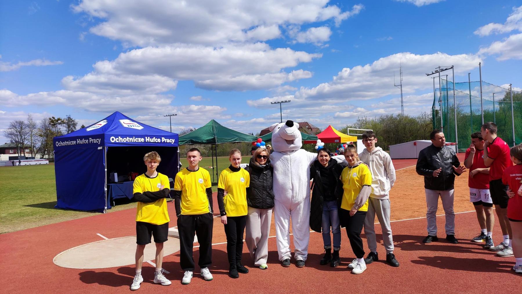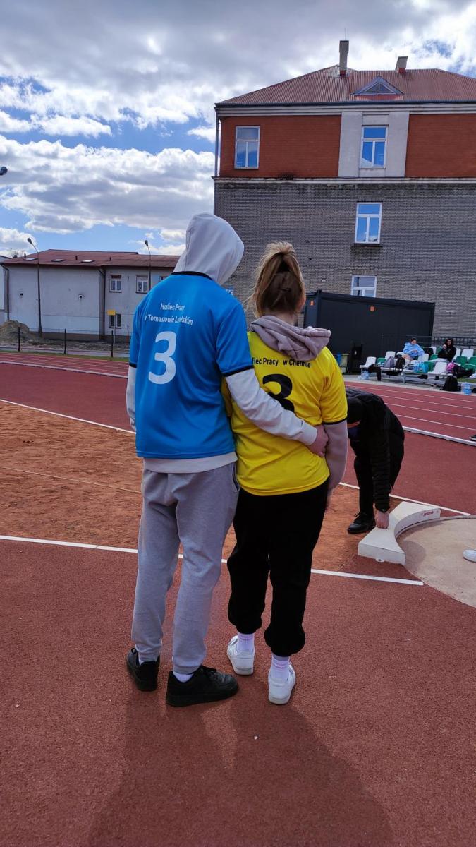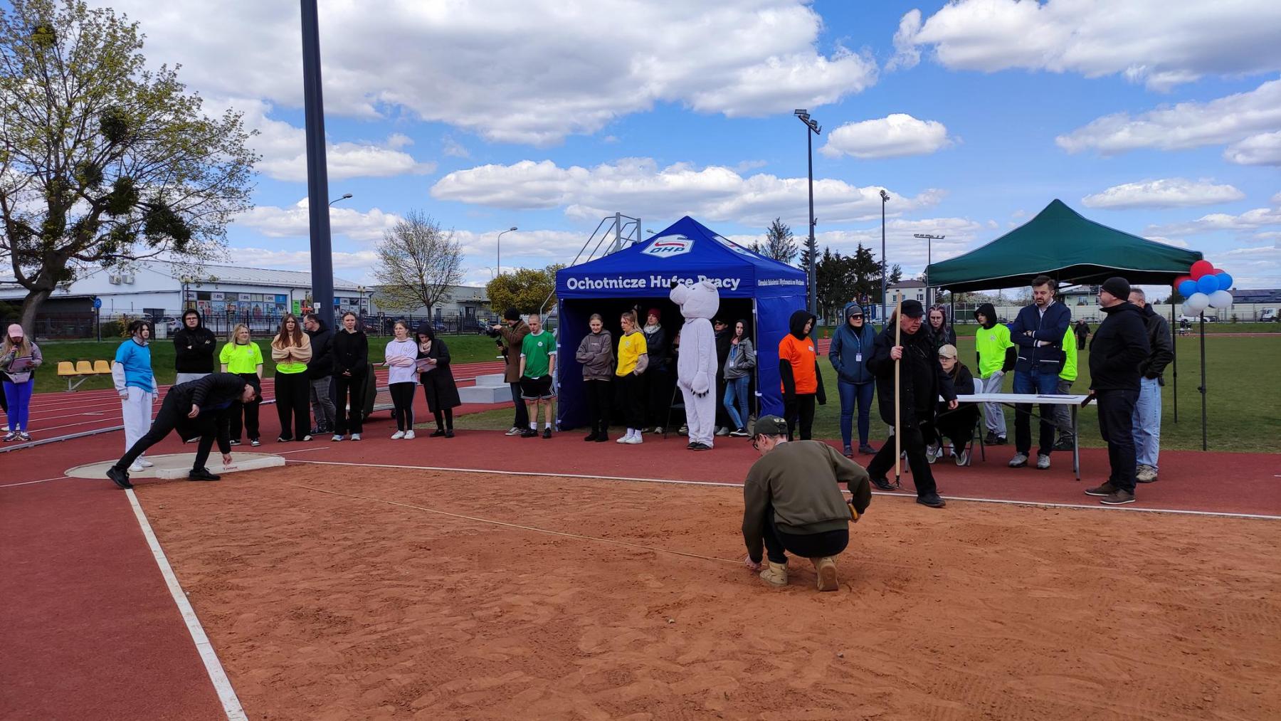 21 kwietnia na Stadionie Lekkoatletycznym MOSiR w Chełmie odbyła się Wojewódzka Spartakiada Lekkoatletyczna Młodzieży OHP. W wydarzeniu wzięło udział 44 zawodników z całego województwa, a wśród nich nie mogło zabraknąć uczniów naszej szkoły, którzy reprezentowali Hufiec Pracy Chełmie. Naszą drużynę tworzyli: Magdalena Winnik (kl. III a), Patrycja Orchowska (kl. III a), Krzysztof Daciuk (kl. I b), Krystian Wróblewski (kl. I b) oraz Brajan Rękas (kl. III b). Uczniowie świetnie poradzili sobie w sportowej rywalizacji i pokazali prawdziwego ducha walki – należą im się ogromne brawa za zaangażowanie, energię i godne reprezentowanie szkoły! Zawodnicy zmierzyli się w konkurencjach drużynowych, takich jak sztafeta 4 × 100 m i przeciąganie liny, a także w konkurencjach indywidualnych: biegu na 100 m, skoku w dal, rzucie piłką palantową i lekarską oraz pchnięciu kulą. Emocji było naprawdę sporo, a każda konkurencja przynosiła nowe sportowe wyzwania. Atrakcją towarzyszącą zawodom był pokaz ratownictwa medycznego przygotowany przez ratowników ze Stacji Ratownictwa Medycznego w Chełmie – była to cenna i bardzo ciekawa lekcja pierwszej pomocy. Gościem specjalnym wydarzenia był Piotr Jabłoński – utytułowany zapaśnik i wielokrotny medalista mistrzostw Polski, olimpijczyk i mistrz świata, który swoją obecnością dodał wydarzeniu sportowego charakteru. Po rozstrzygnięciu wszystkich konkurencji wszyscy uczestnicy otrzymali pamiątkowe medale oraz upominki. Na zakończenie na zawodników czekał gorący obiad – idealny moment na odpoczynek i wspólne podsumowanie dnia. Spartakiada była pełna pozytywnej energii, uśmiechu i sportowych emocji. To świetny przykład na to, że aktywność fizyczna może być nie tylko rywalizacją, ale też dobrą zabawą i sposobem na integrację. Wydarzenie zostało zauważone także przez media – patronat objęła między innymi TVP3 Lublin, a relacja pojawiła się w programie Panorama Lubelska. W programie można obejrzeć naszą młodzież w czasie konkurencji oraz Magdalenę udzielającą wywiadu. Jeszcze raz gratulujemy naszej drużynie – jesteśmy z Was bardzo dumni!